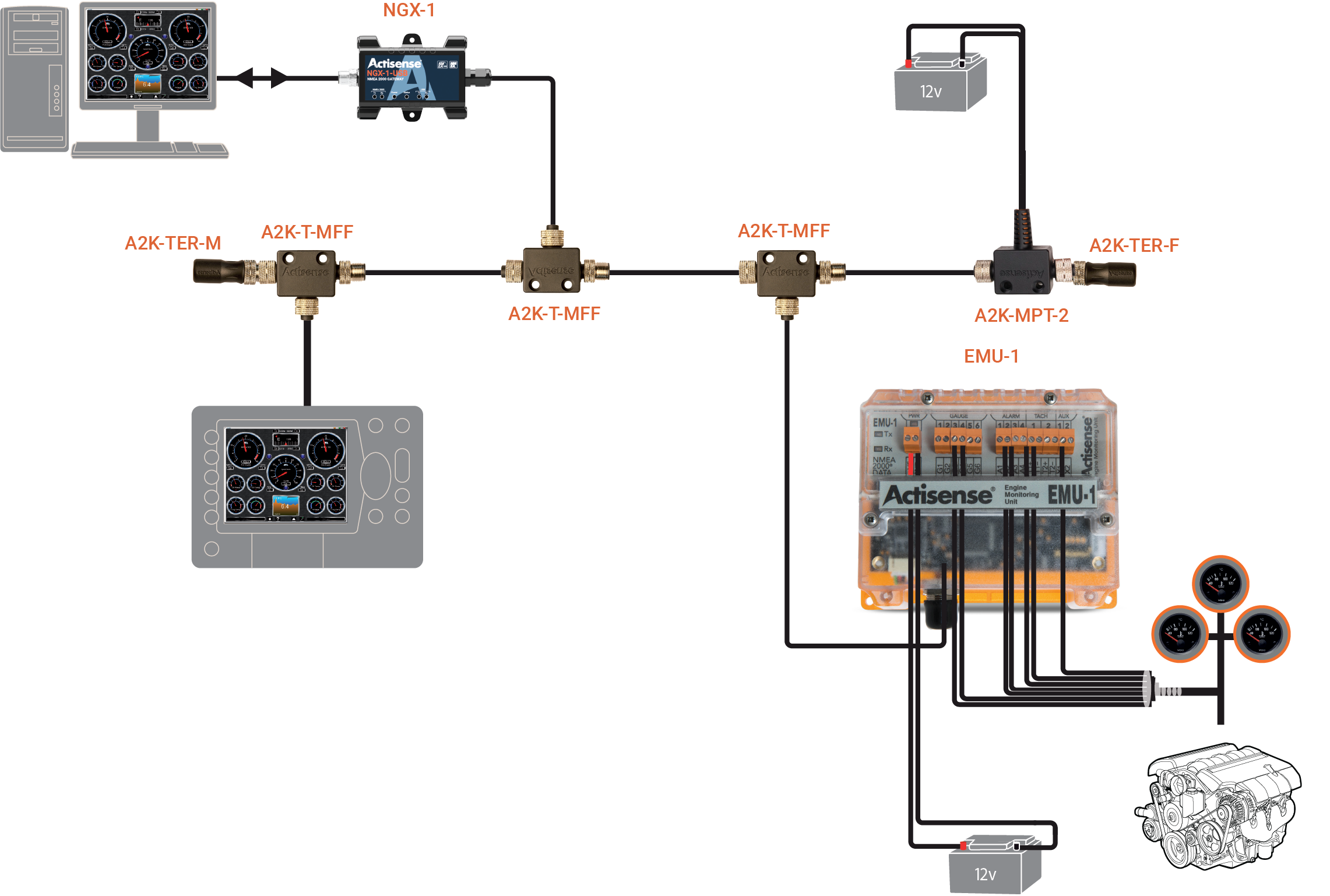 A prime example of this is a typical set-up of a duel diesel engine that’s purely analogue, and the owner has an NMEA 2000 network with GPS, AIS, MFD etc… The MFD is capable of displaying various engine parameters such as temp, oil pressure, RPM, tilt/trim, transmission position, fuel level and the owner wants this info from his engines.